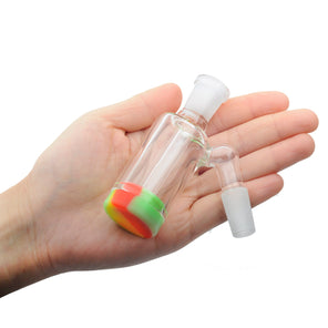 This is 14mm male female Ash Catcher Reclaim Catcher Water Bong Dab Rig Accessory, including 90 and 45 degree 14mm male female ash catcher reclaim catcher adapter and the silicone container.