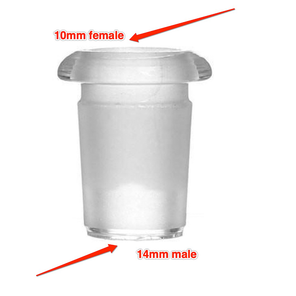 Dies ist der 14-mm-Stecker auf 10-mm-Glasadapter mit niedrigem Profil für Dynavap- und 10-mm-Verdampfer, der für alle 10-mm-Stecker- oder 14-mm-Stecker-Verdampfer geeignet ist.