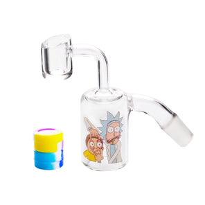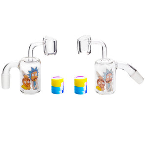 This is Rick and Morty 14mm reclaim catcher ash catcher male reusable silicone container, we have two different versions, 45 or 90 degree.