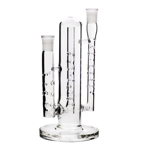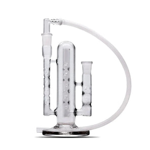 This is our new dry pipe, both joints are 14mm female, the long dimpled glass patchway will let you enjoy the best cooling without needing water. About 7.7" inch height and it is a all in one 6pc kits include the whip attachment, glass mouthpiece, keck clip.