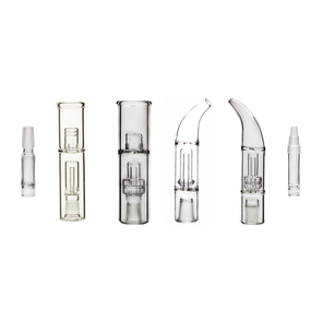 Dies sind 4 verschiedene tragbare Glasbubbler mit Wasserpfeifen-Bong-Adapter für Tinymight und Tinymight 2. Zwei gerade und zwei gebogene mit unterschiedlichen Perkolatoren. WPA-Adapter sind in den Versionen 14 mm oder 3 in 1 erhältlich.