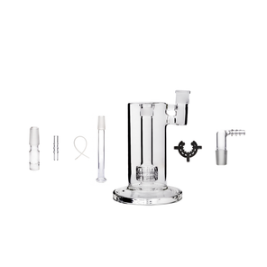 This is the 6 in 1 and 8 in 1 Mobuis Water Glass Bong Kit with 14mm or 4 in 1 WPA glass adapter for arizer products. The mobuis bong features the matrix perc, portable size, 2 or 3 joints version.