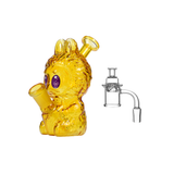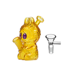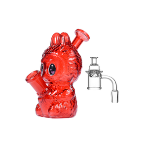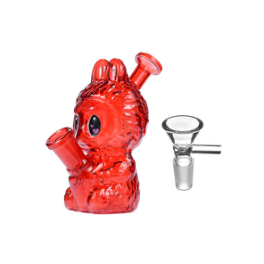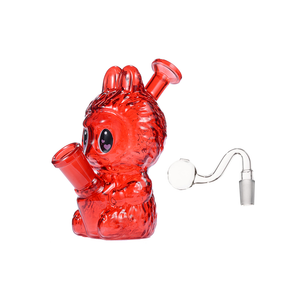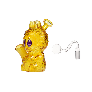 This is the cartoon shaped glass bubbler bong kit, it features the 14mm female joint, portable size, different colors to choose, thick glass, round mouthpiece, you can use the 14mm male oil burner bowl, flower bowl or banger to use with it.